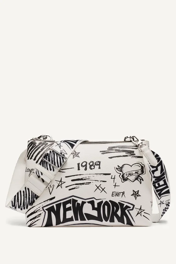 - Bolso de bandolera con estampado de grafitis Tinsley y logotipo en relieve