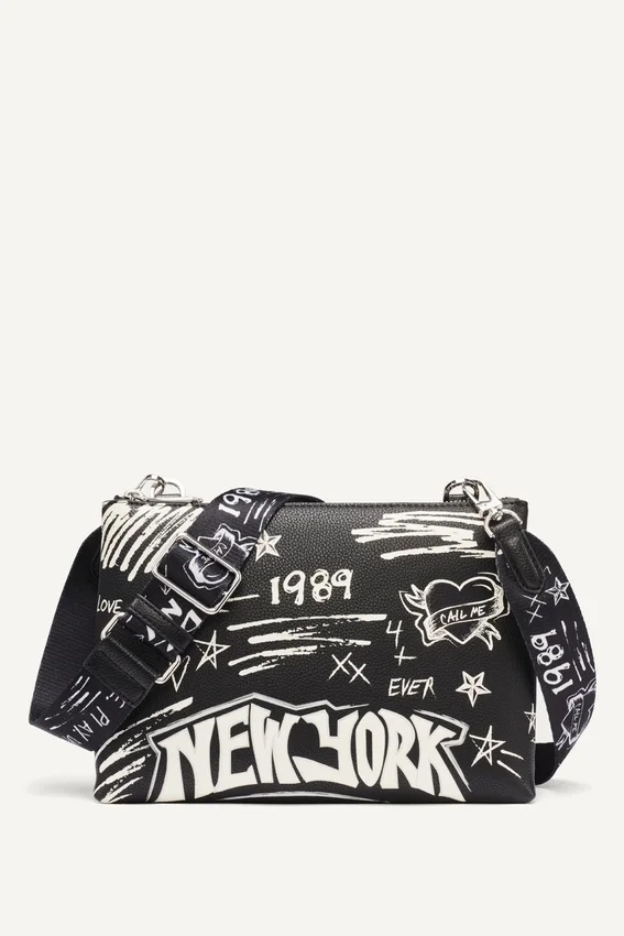 • Bolso de bandolera con estampado de grafitis Tinsley y logotipo en relieve