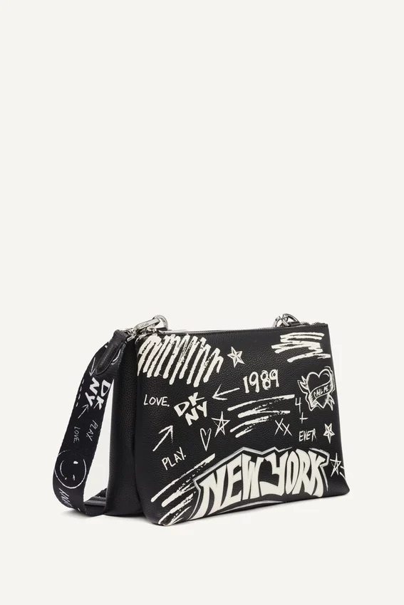 Bolsos Bandolera Tinsley con estampado de grafitis y logotipo en relieve. Bolsillos interiores abiertos y con cremallera; correa de bandolera desmontable y ajustable; cierre superior con cremallera. Forrado. Cuero napa sintético con textura de doble cara: 100 % poliuretano; forro: 100 % poliéster. Limpiar las manchas con un paño suave. Guardar en una bolsa protectora. Importado. N.º de estilo: R54Eic45