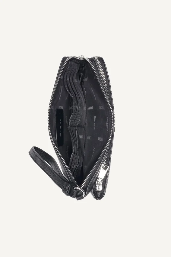 Compacta y versátil, la bolsa con doble cremallera y bolsos de muñeca Sarah está diseñada para una fácil organización con una silueta estilizada. Perfecta para llevar lo esencial por sí sola o dentro de un bolso más grande.