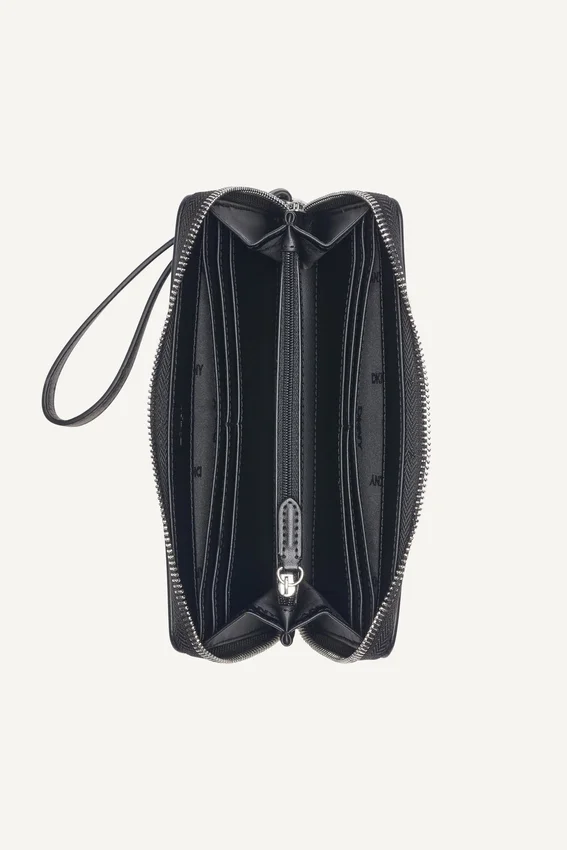 Cierre con cremallera alrededor Correa de Bolsos De Muñeca desmontable Silueta de carteras grandes Múltiples compartimentos interiores para organizar el contenido Acabado liso Tejido: 100 % poliuretano Limpiar las manchas con un paño suave y seco Importado N.º de estilo: R541Do67