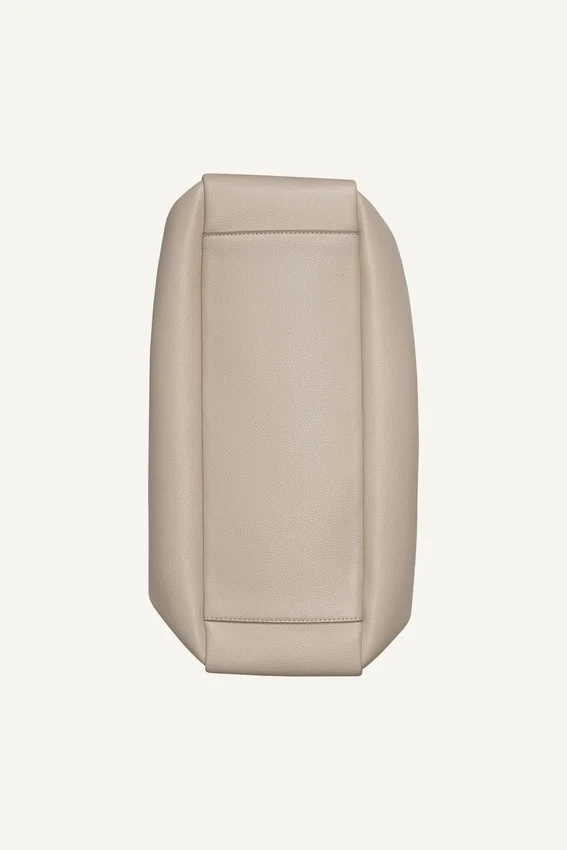 Preparado para lo esencial —cartera, teléfono, gafas de sol y un mini kit de belleza— este bolso tipo satchel combina con un mini vestido de jersé, botas altas y un sombrero de conductor.
