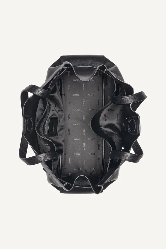 - Bolsillos interiores delanteros abiertos, con bolsillos de espalda abiertos y con cremallera; Dos asas superiores; cierre con lengüeta a presión