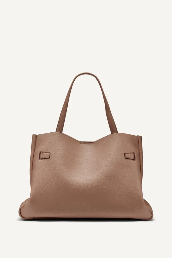 Este bolso Satchel grande aporta un toque urbano con una sonrisa, con capacidad para tu tableta, maquillaje y un par de zapatos de recambio, por si quieres llevar un vestido midi de mezclilla y tenis durante el día y un vestido negro con tacones al caer la noche.