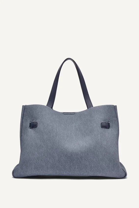 Faltá a clase con estilo: este bolso tipo cartera de denim mantiene a salvo tu lectura favorita, tus audífonos y tu cartera, y combina sin esfuerzo con una camiseta con logo, pantalones holgados y tenis con cuña.