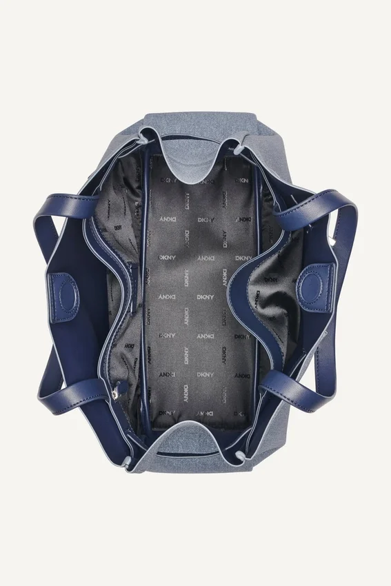 - Exterior de denim: 100 % poliuretano; Asas y ribetes de imitación de cuero: 100 % poliuretano; Forro de jacquard con logotipo: 100 % poliuretano / poliéster