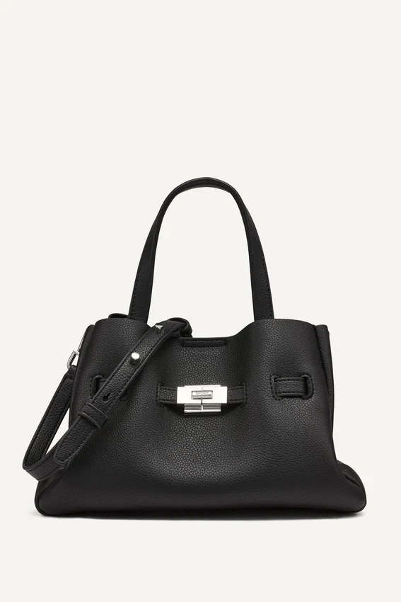 • Confeccionado en 100 % poliuretano, ofrece un acabado elegante con una silueta moderna.Diseñado con dos asas superiores y una correa de bolsos bandolera desmontable, este bolso de mano pasa sin problemas del día a la noche mientras mantiene lo esencial a la mano.