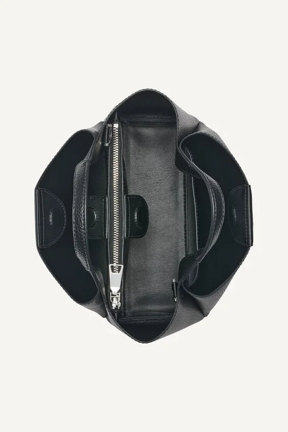Tu pequeño compañero ideal para tus escapadas del centro a la zona residencial: este bolso tipo Satchel mini tiene capacidad solo para lo imprescindible —el celular, las tarjetas y el bálsamo labial— sin recargar un look sencillo de chaqueta bomber sobre vaqueros plumíferos.