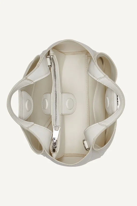 - Bolsillo central interior con cremallera y bolsillo trasero abierto