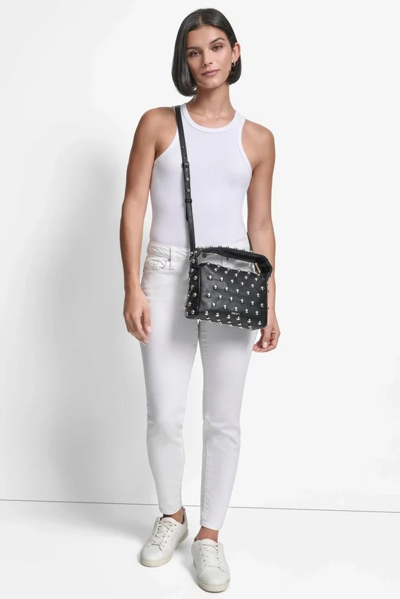 Silueta de bolso de hombro Fabricación en poliuretano liso Interior compacto pero espacioso Diseño clásico de DKNY, perfecto para el uso diario Correa desmontable y ajustable Importado Estilo n.º: R533Am52