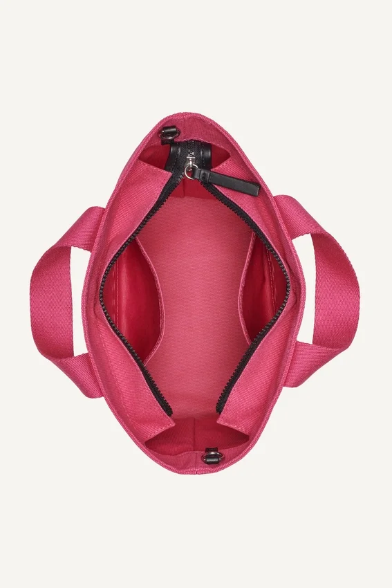 • Correa para el hombro desmontable y ajustable de tejido jacquard con el logotipo; asas superiores dobles; cierre superior con cremallera