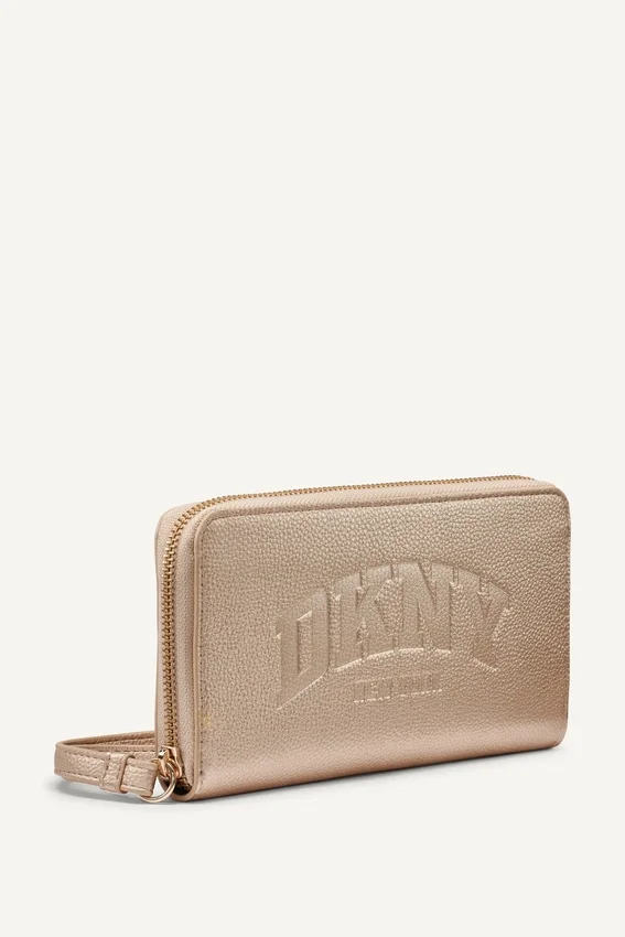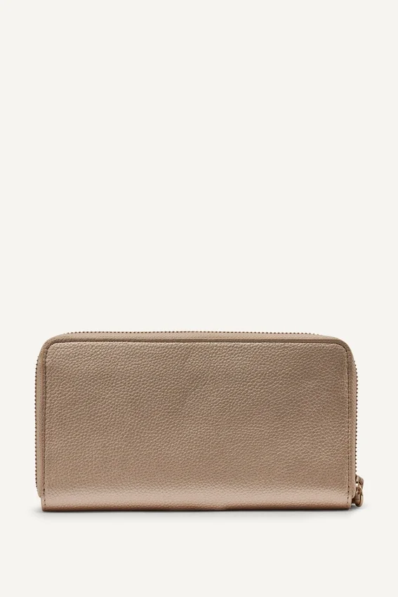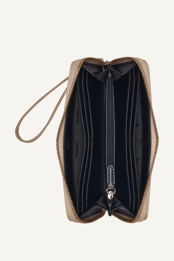 - Cartera espaciosa con cierre perimetral y correa de muñeca desmontable