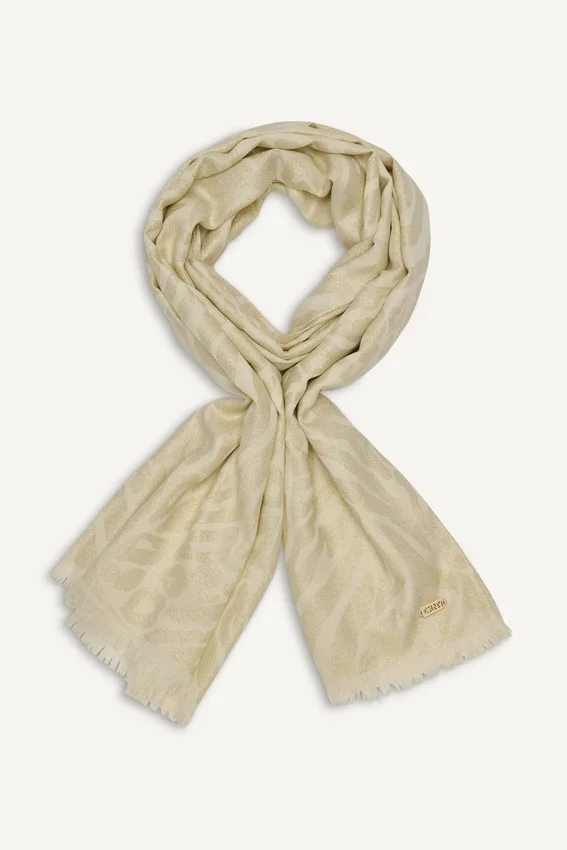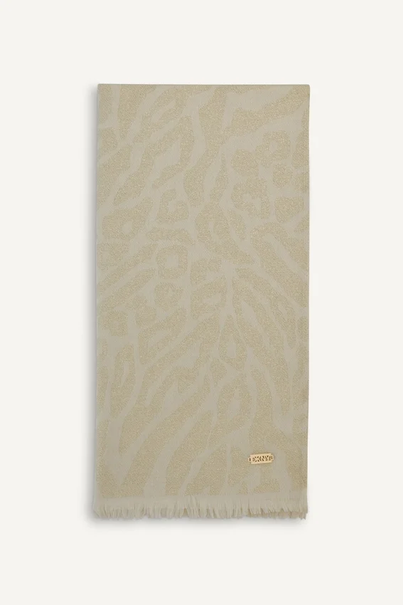 Brillando con una elegancia discreta, esta bufanda de pashmina metalizada añade un toque luminoso a cualquier conjunto. Confeccionada con una suave mezcla de poliéster con sutiles hilos metálicos, es el accesorio perfecto para combinar en capas y lograr un look sofisticado en climas fríos.