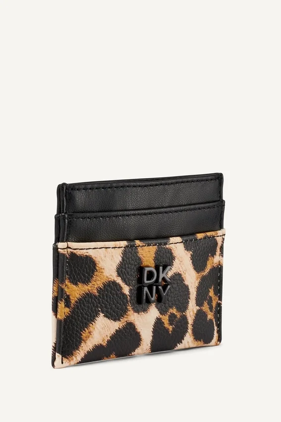 Fundas para tarjetas Tres ranuras para tarjetas Estampado de leopardo DKNY en la parte delantera Importado N.º de estilo: R54Zdk27