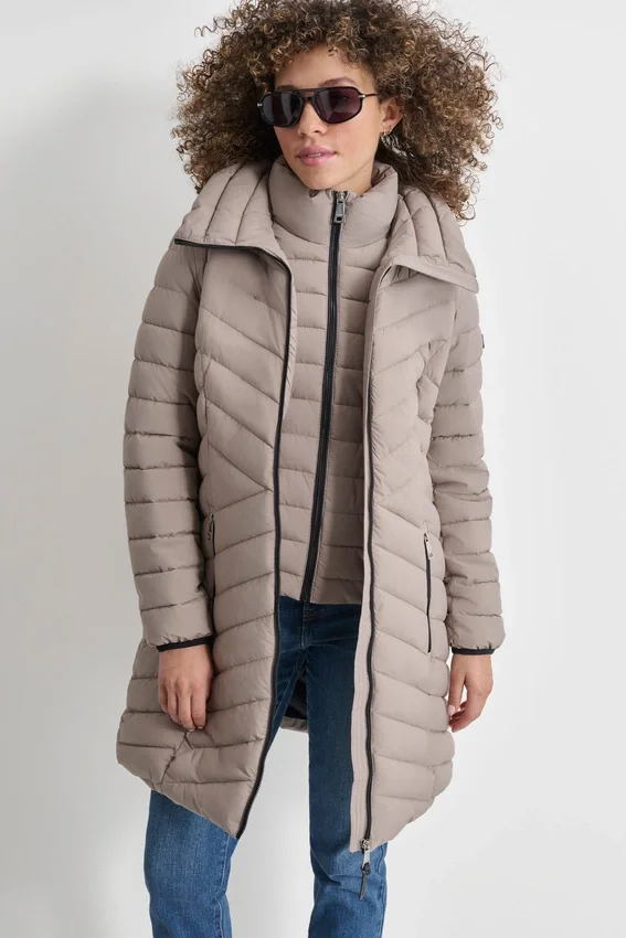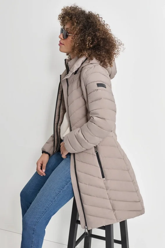 Mangas largas Cierre con cremallera completa Bolsillos laterales con cremallera Capuchas integradas 100 % poliéster; Forro: 100 % nailon; Relleno: 100 % poliéster Lavable a máquina Aprox. 86 cm de largo Origen: Importado Estilo: Dlsmpn46