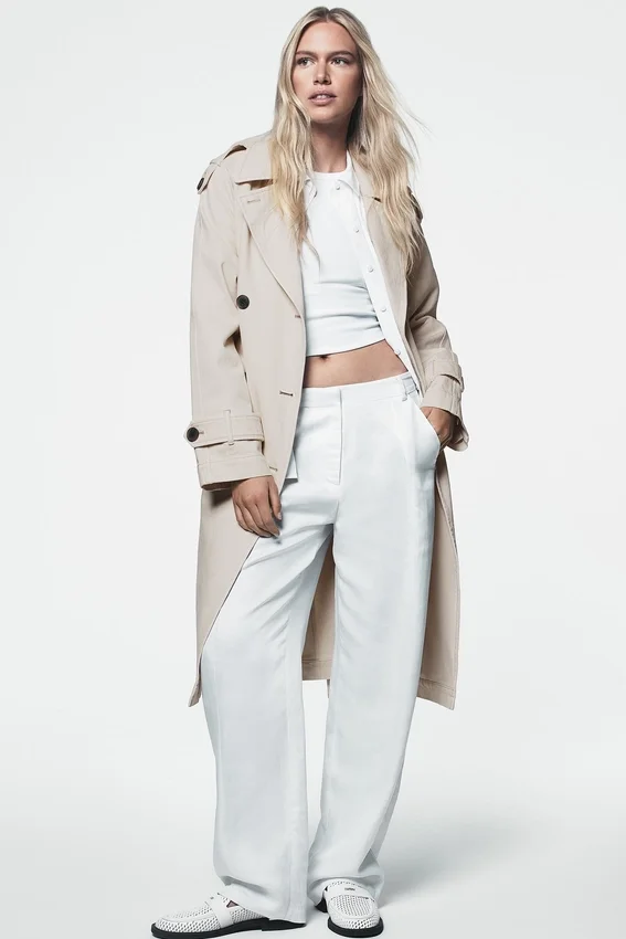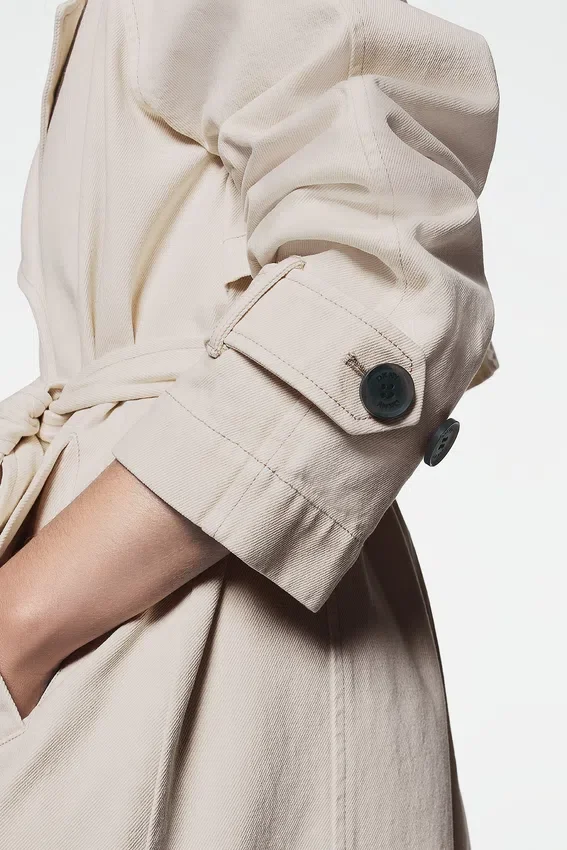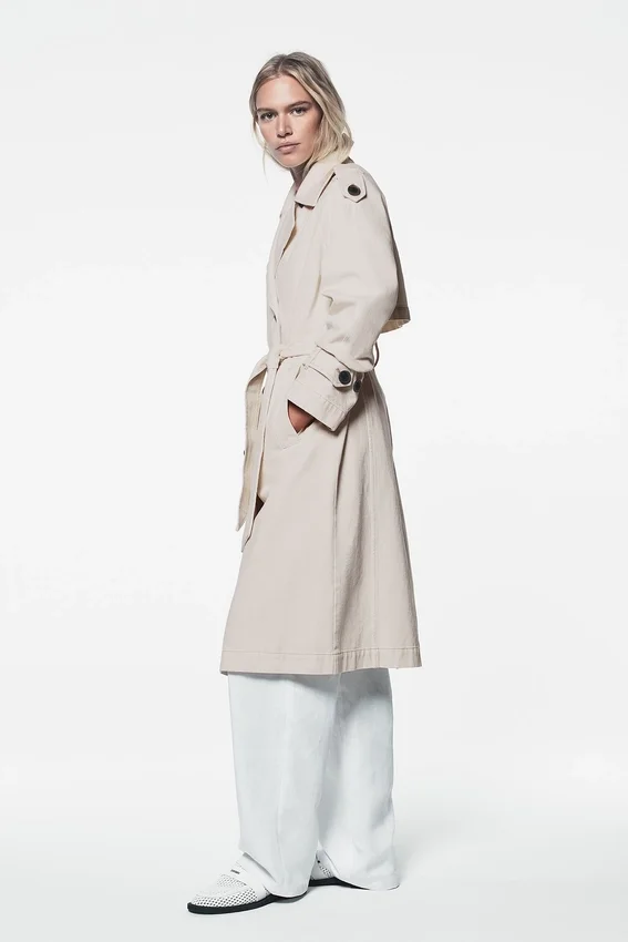 Una gabardina atemporal con un estilo desenfadado. Esta silueta de doble botonadura combina a la perfección con todo, desde conjuntos de sastrería hasta camisetas informales y jeans, para un look cotidiano sofisticado.
