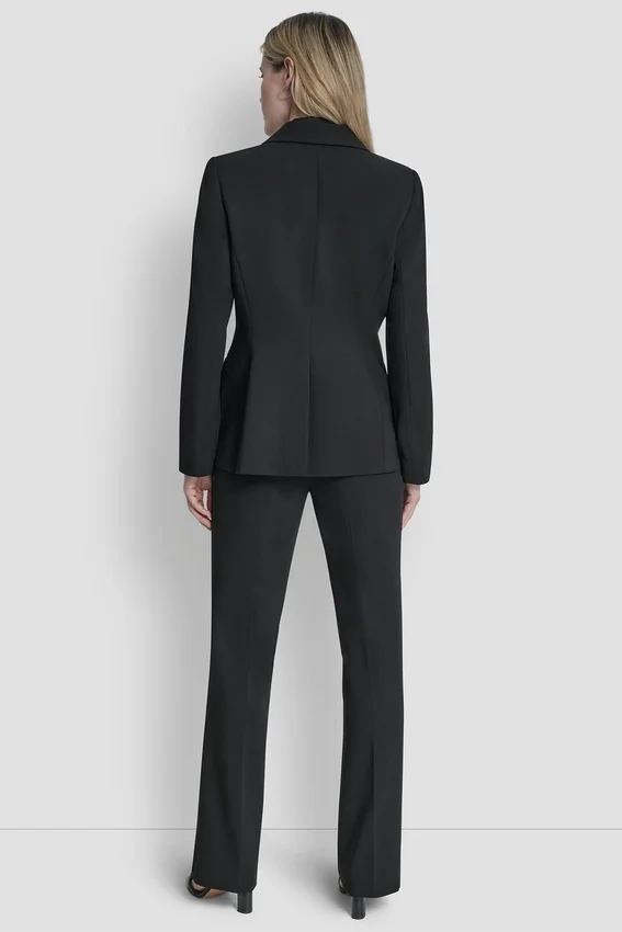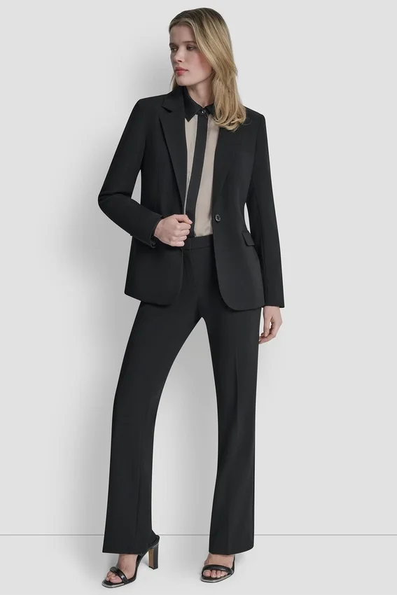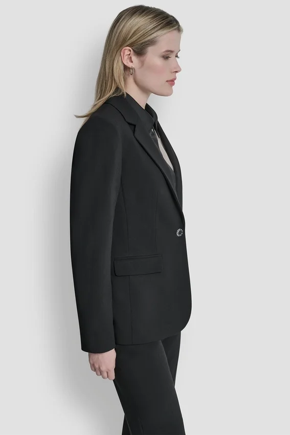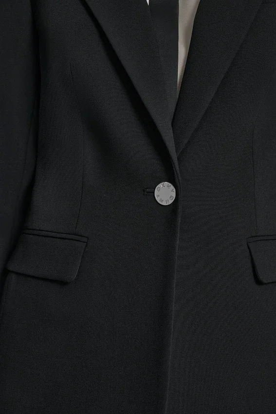 Con un corte entallado y versátil, esta chaqueta tejida ofrece una silueta elegante con un cómodo tejido elástico. Diseñada para crear capas refinadas, es un básico moderno para el trabajo o para un estilo cotidiano sofisticado.