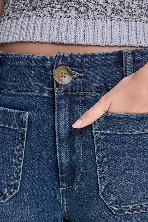 Pantalón de cintura alta y pierna ancha con bolsillos de parche