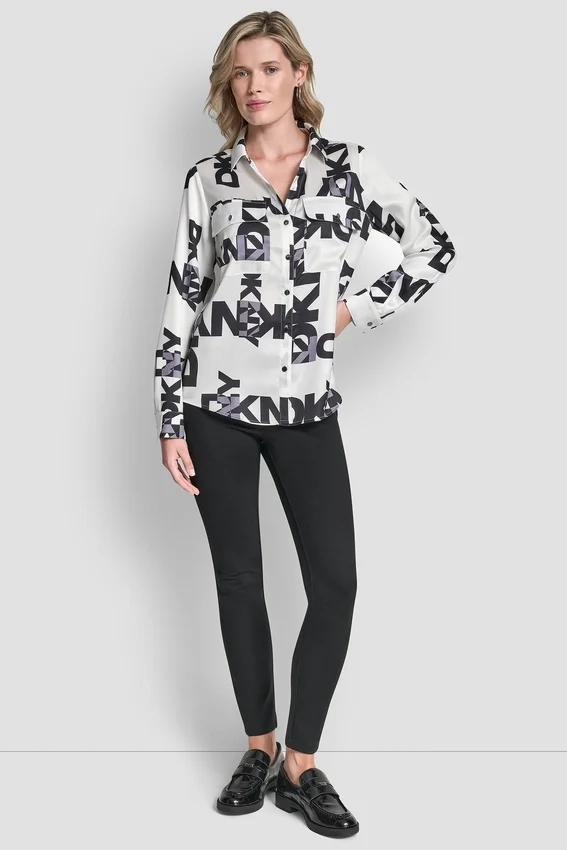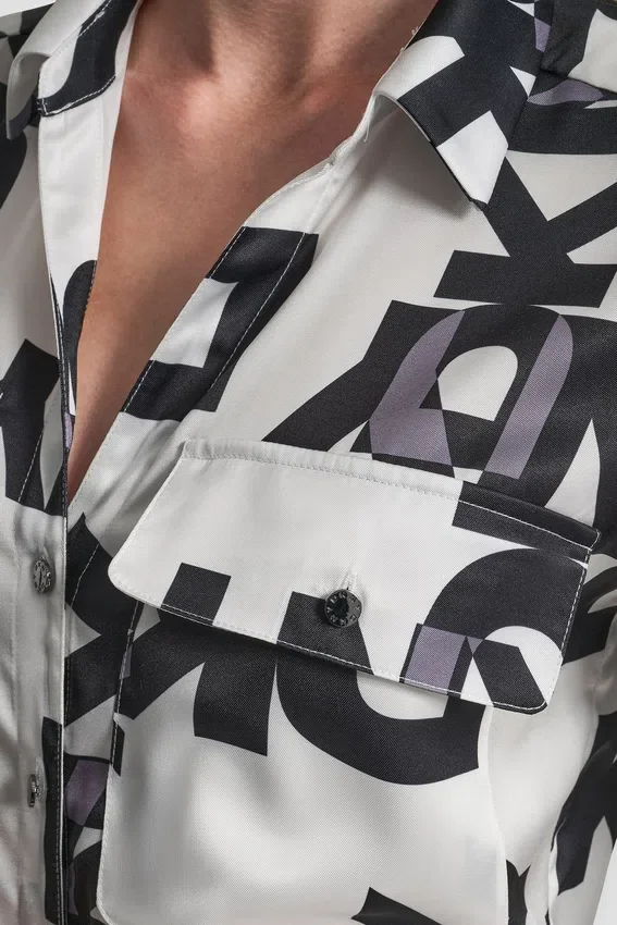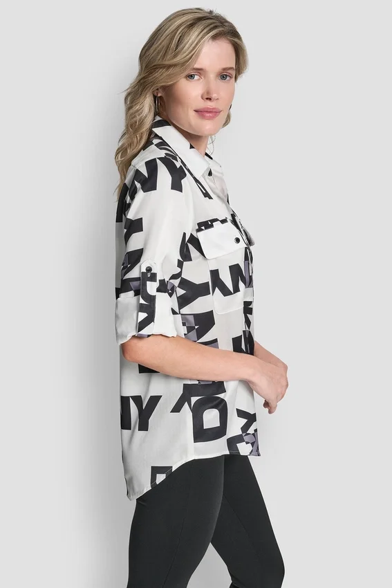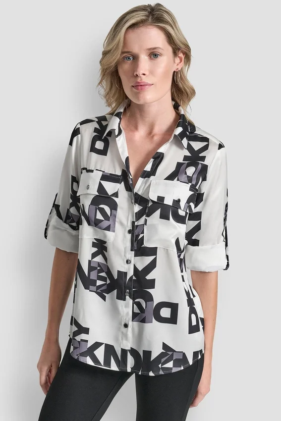 Elegante y versátil, esta camisa de sarga estampada presenta un refinado patrón de logotipo con un diseño clásico de botones en el frente. Las mangas con lengüetas enrollables ofrecen flexibilidad de estilo, lo que la hace perfecta tanto para el trabajo como para el uso diario.