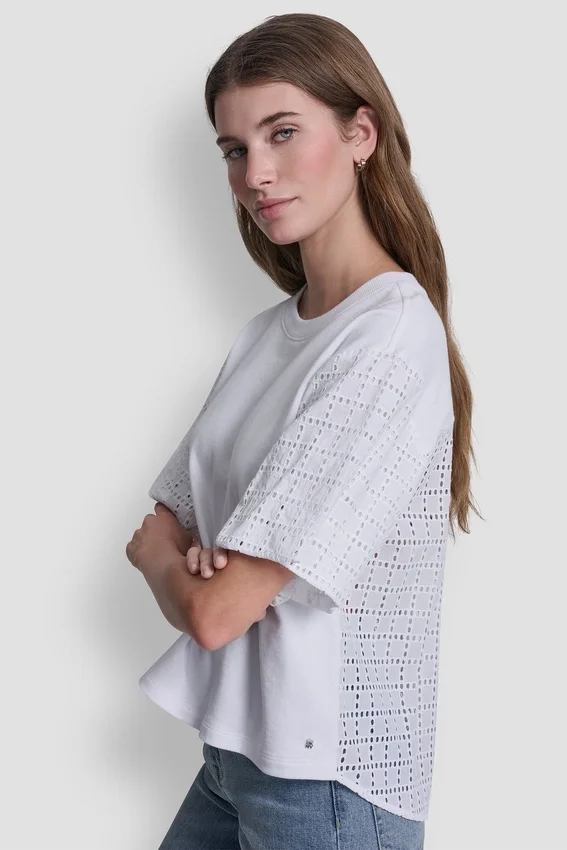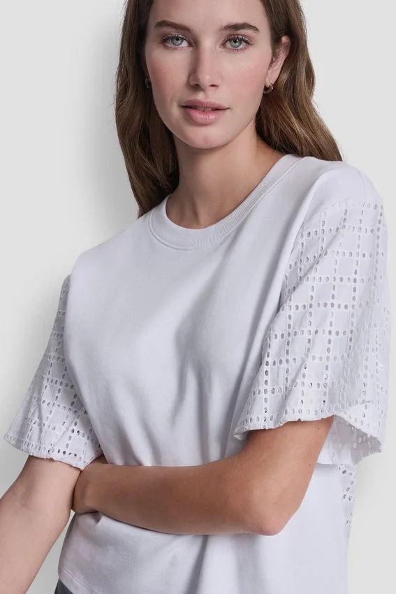 Esta sudadera de cuello redondo, realzada con detalles femeninos, cuenta con mangas abullonadas y un diseño con ojales en la espalda que le da un toque moderno a una silueta clásica. Confeccionada en algodón suave, ofrece comodidad para el día a día con un estilo llamativo.