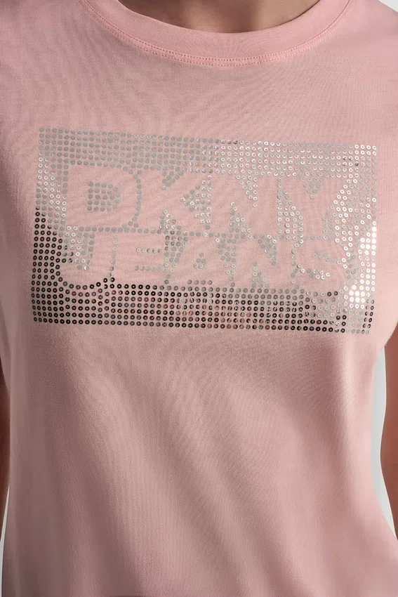Una camiseta divertida pero elegante, este modelo de cuello redondo y manga corta presenta un logotipo en forma de caja con lentejuelas sintéticas superpuestas que le da un toque brillante y gráfico. La suave mezcla de algodón y modal ofrece comodidad para el día a día con una sensación de ligereza.