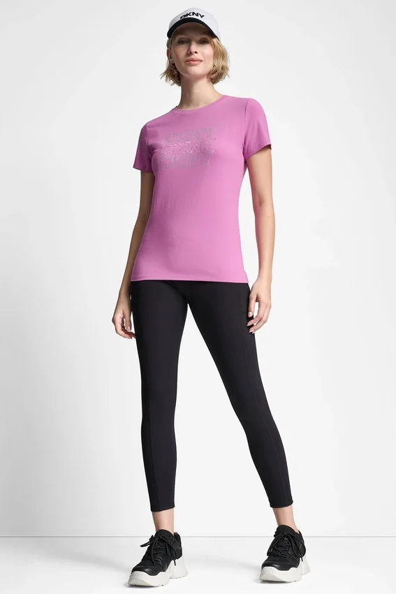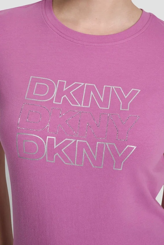 El brillo se une a la comodidad cotidiana en esta camiseta de cuello redondo de algodón elástico suave, rematada con un logotipo de lámina con tres piezas de Pedrería para darle un toque elegante y llamativo.
