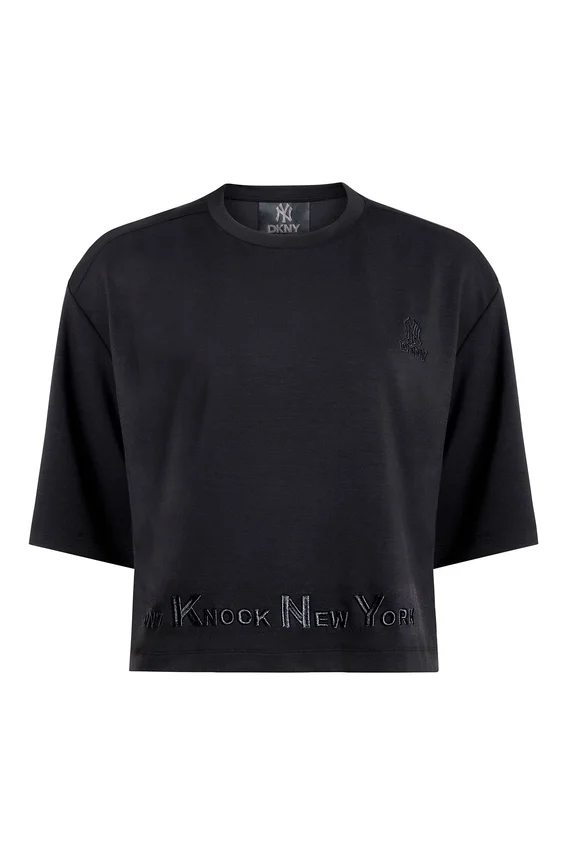 - Camiseta corta de manga corta con cuello redondo y relieve «Don’t Knock New York» de DKNY x Yankees
