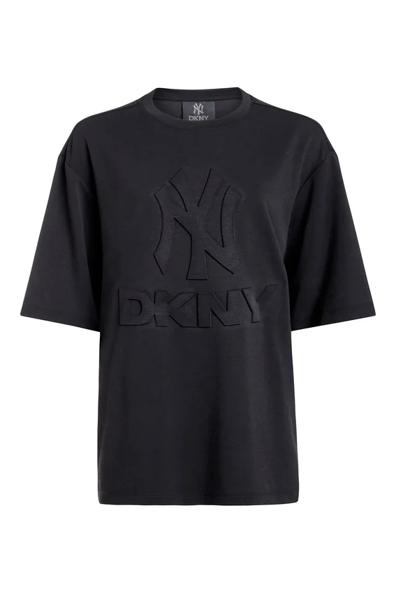 • Camiseta de manga corta con cuello redondo y logotipo en relieve DKNY X Yankees