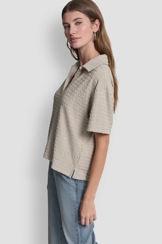 Camiseta polo holgada de manga corta, diseño sin botones con tapeta abierta, cuellos con solapas, sin forro. Tejido: 98 % poliéster, 2 % spandex. Cuidados: Lavar a máquina en frío con colores similares, del revés; ciclo suave. No usar lejía. Secar en plano. Planchar a baja temperatura si es necesario. No limpiar en seco. Importado. N.º de estilo: Dj6T1738