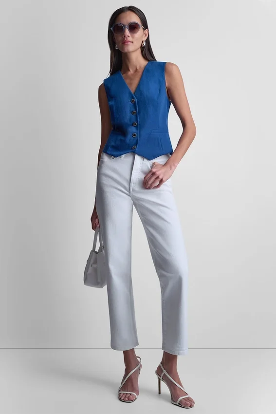 Mantén las capas minimalistas pero inesperadas: este chaleco de piqué bajo una Blazer de lino con pantalones cortos a juego, rematado con unos elegantes Mocasines para un uniforme diario mejorado.