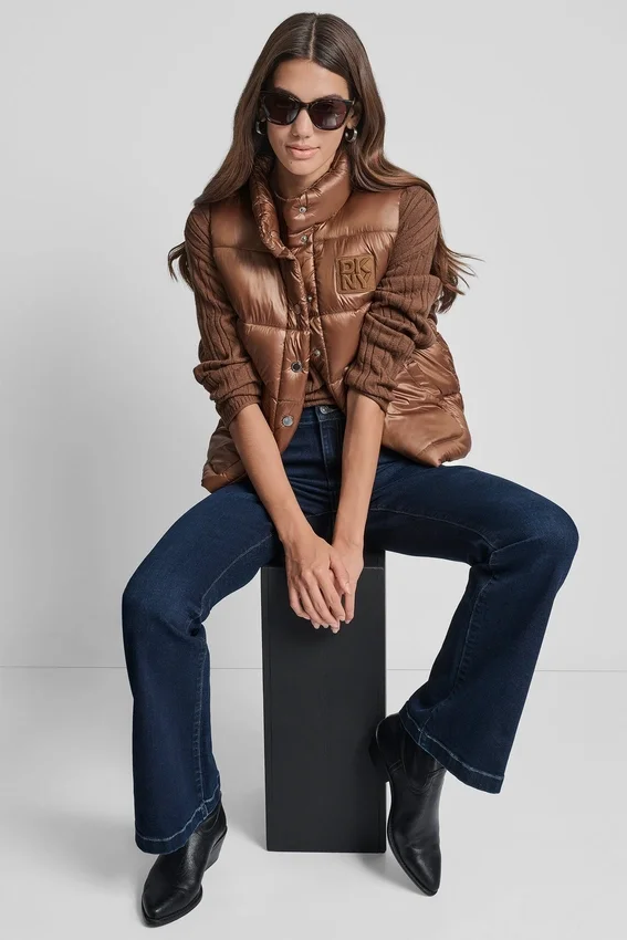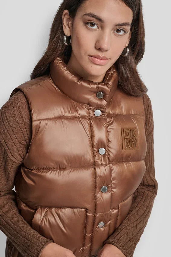 - Chaleco plumífero con cuello alto y logotipo bordado