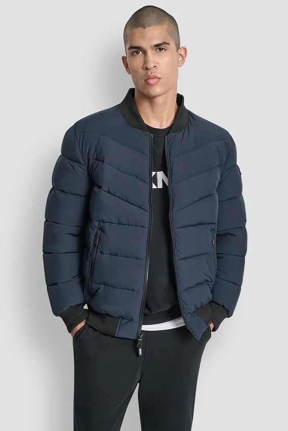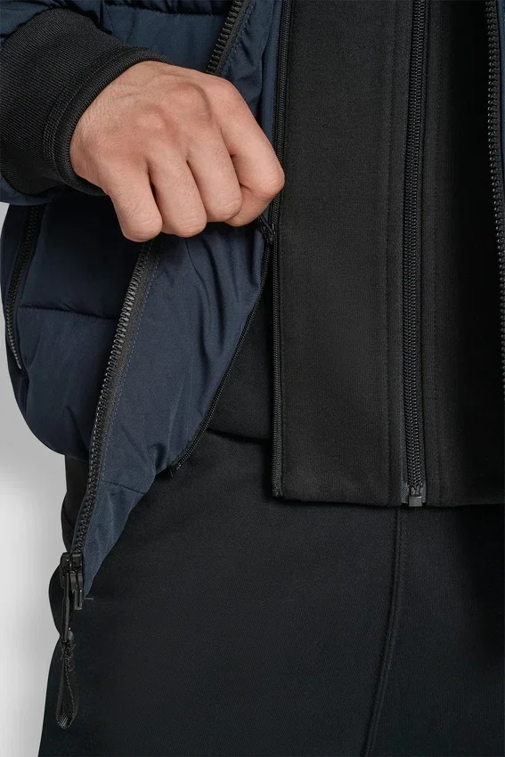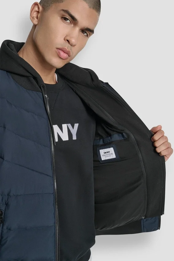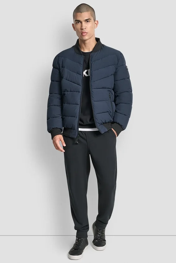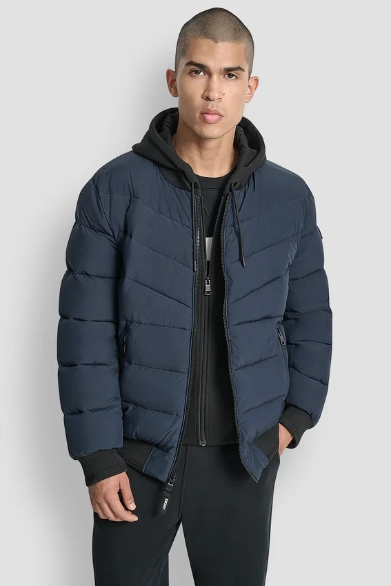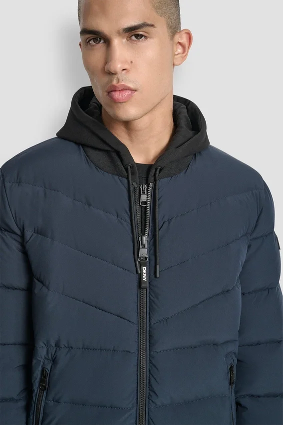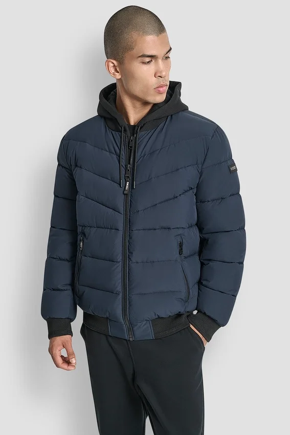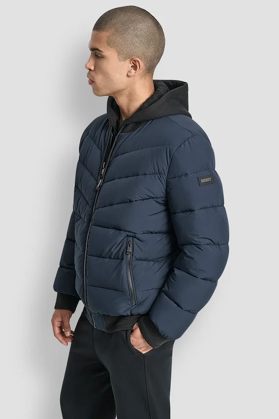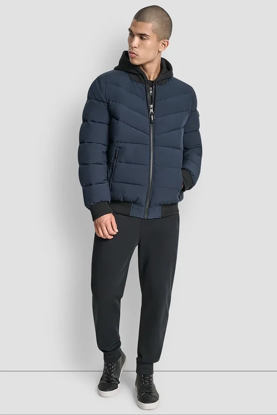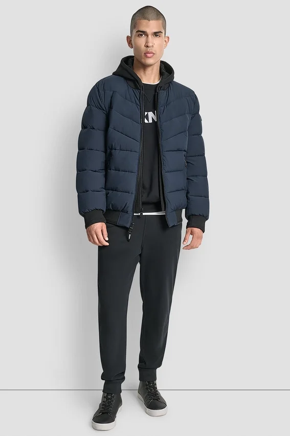 - Chaqueta bomber elástica plumífera con peto con capucha