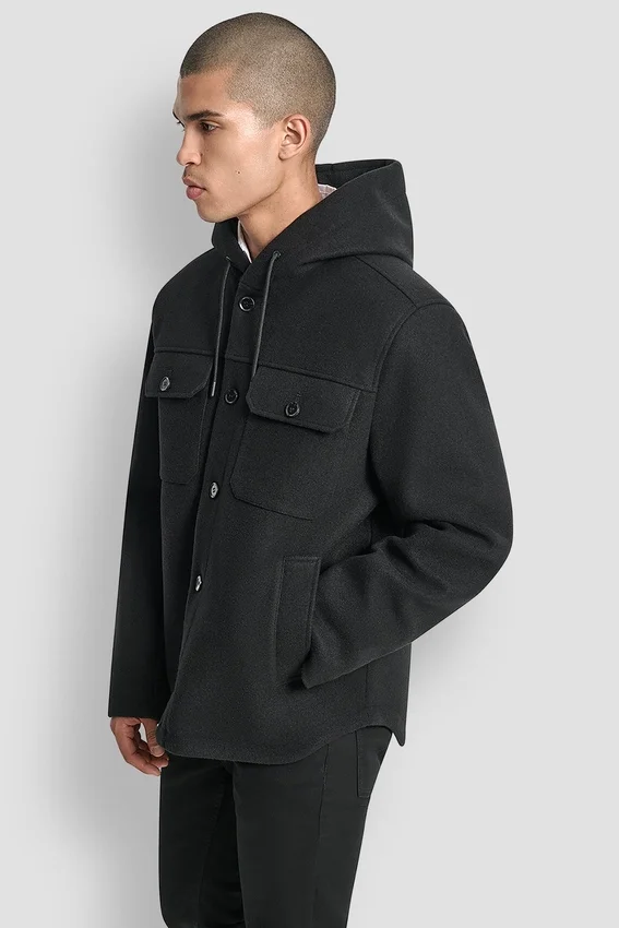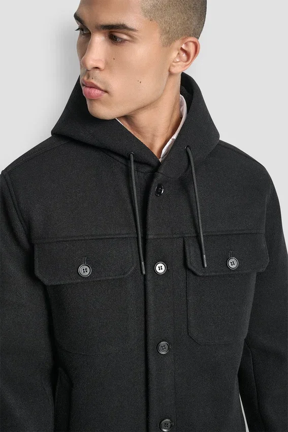 Esta versátil chaqueta reinventa la ropa de abrigo clásica con una mezcla de imitación de lana elegante y estructurada y un diseño aerodinámico con capucha, pensada para los días más frescos en la ciudad.