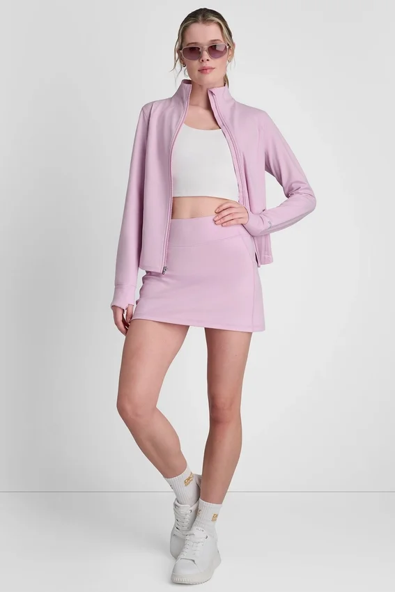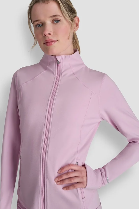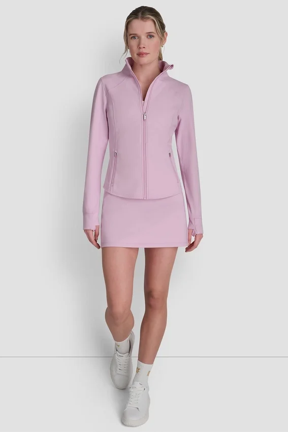 Chaqueta de cuello alto con mangas largas con presillas para los pulgares Cierre con cremallera completa Bolsillos con cremallera Sin forro Exterior: 89 % poliéster, 11 % elastano (spandex) Lavar a máquina en frío del revés y sacar rápidamente — No usar lejía ni suavizante — Secar en secadora a baja temperatura Importada N.º de estilo: Dp6J9708
