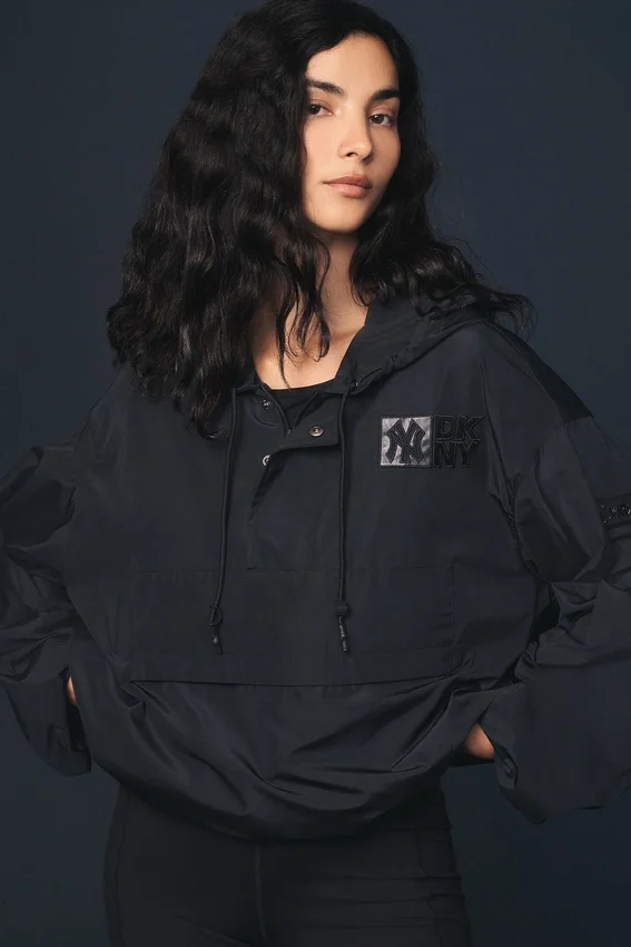 - Chaqueta DKNY x Yankees con adornos en relieve, capucha con cordones y dobladillos