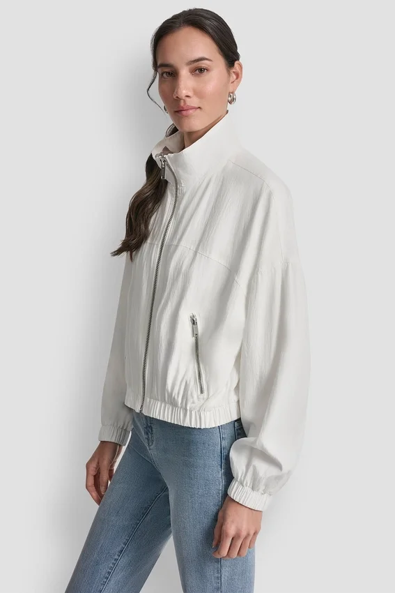 - Gabardina con cuello alto y logotipo, puños y dobladillos elásticos