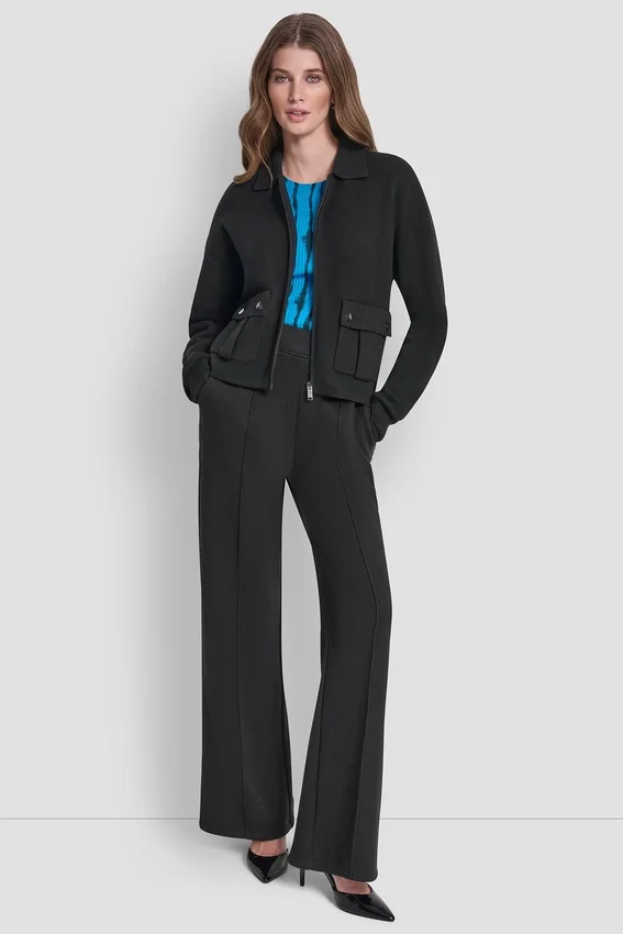 Combina esta chaqueta de jersé con una camiseta estampada y pantalones plisados, ponte unas botas Chelsea y tu look de la oficina a la calle estará completo.