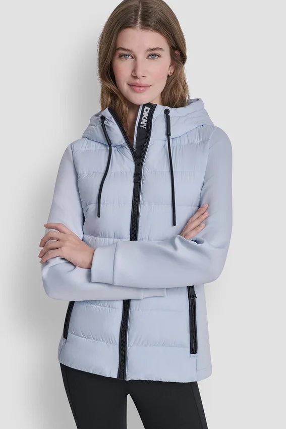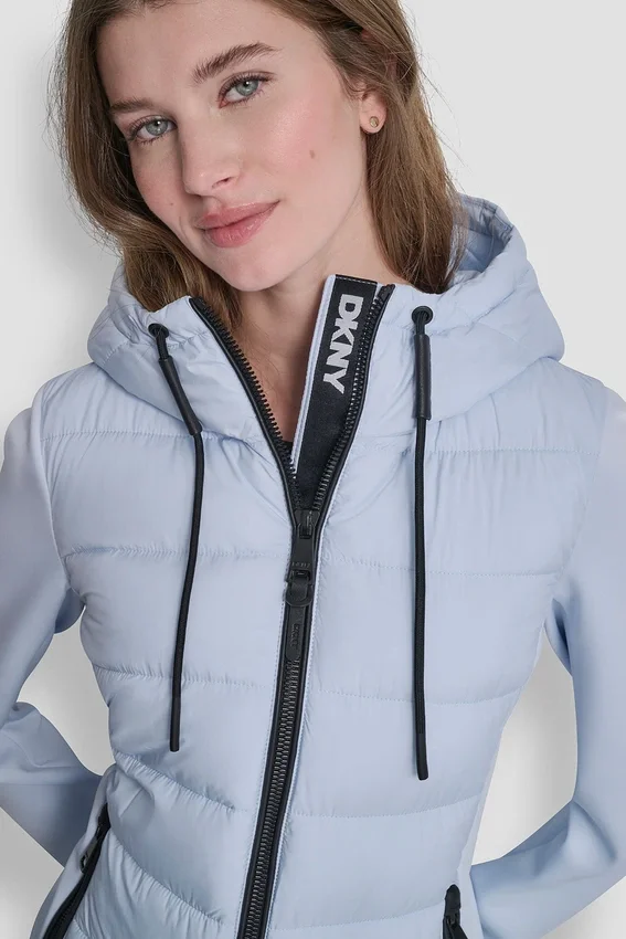 Una versión elegante de los plumíferos clásicos, esta chaqueta de materiales mixtos combina un diseño moderno con comodidad funcional para el uso diario.