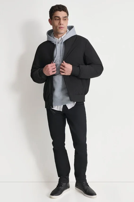 Chaqueta de poliéster elástico Chaqueta ligera tejida confeccionada en 100 % poliéster con elasticidad para mayor comodidad Cierre frontal con cremallera y acabado limpio y estilizado Diseñada para un uso versátil, desde los desplazamientos diarios al trabajo hasta las salidas de fin de semana Importada N.º de estilo: Dx3Mp844