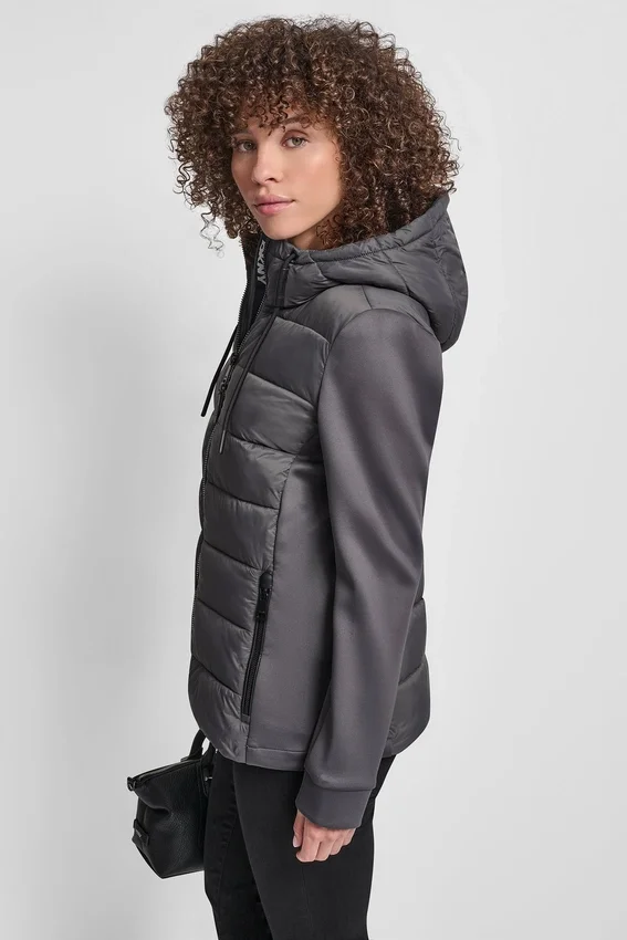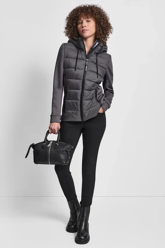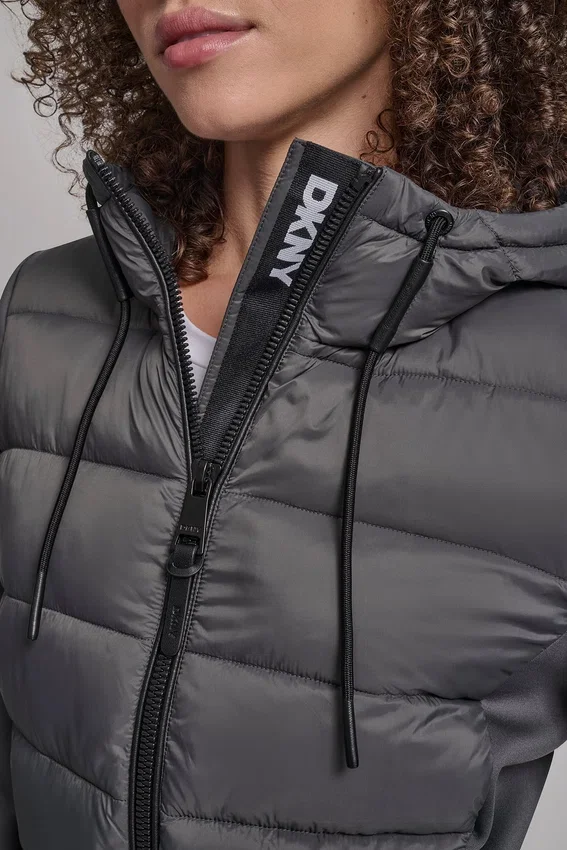 Chaqueta mixta de canal recto Silueta recta con cuerpo acolchado con canal moderno. Caparazón de nylon duradero con recubrimiento transparente para mayor protección. Diseñada para capas ligeras sin sacrificar la calidez. Cuidados: Dar vuelta antes de lavar. Lavar a máquina en frío por separado, ciclo suave. No usar suavizante.