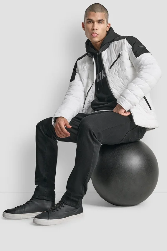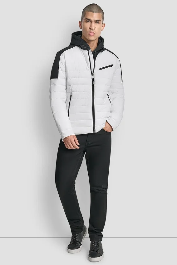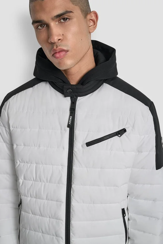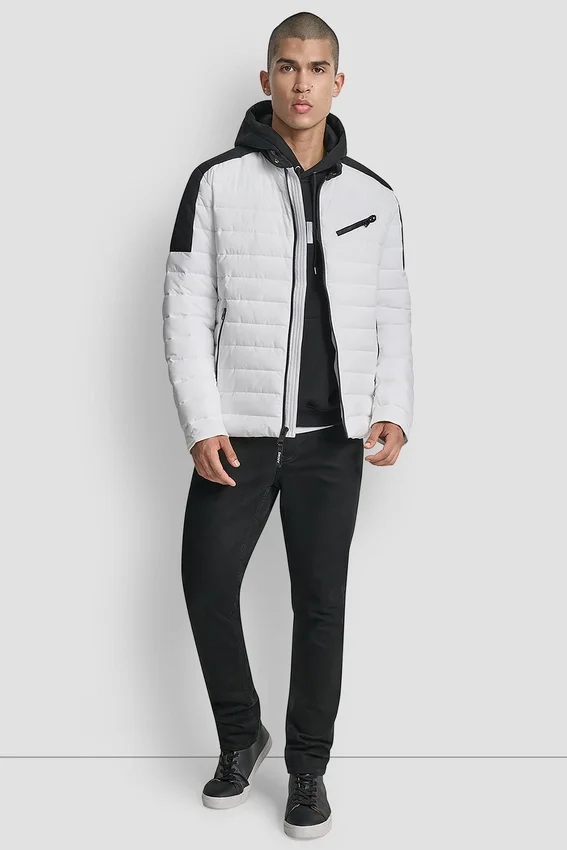 Chaqueta plumífero ligera estilo moto Cierre frontal con cremallera; Acolchado inspirado en el estilo moto Exterior: 100 % nailon con recubrimiento transparente Lavar a máquina en frío con colores similares; ciclo delicado; secar en secadora a baja temperatura; usar solo blanqueador sin cloro cuando sea necesario; no planchar Importada N.º de estilo: Dx551855