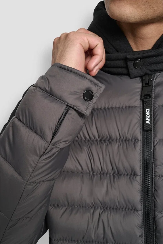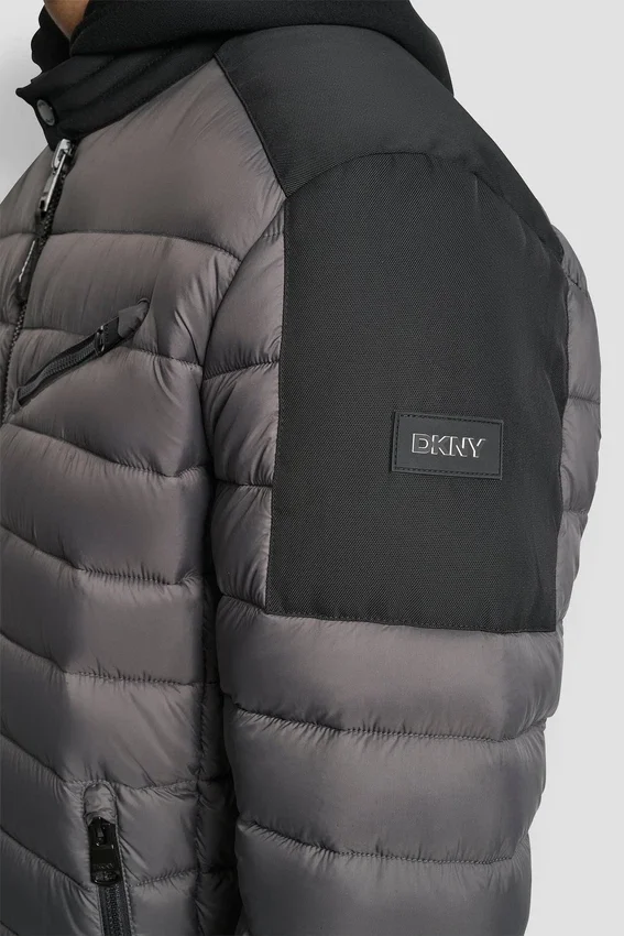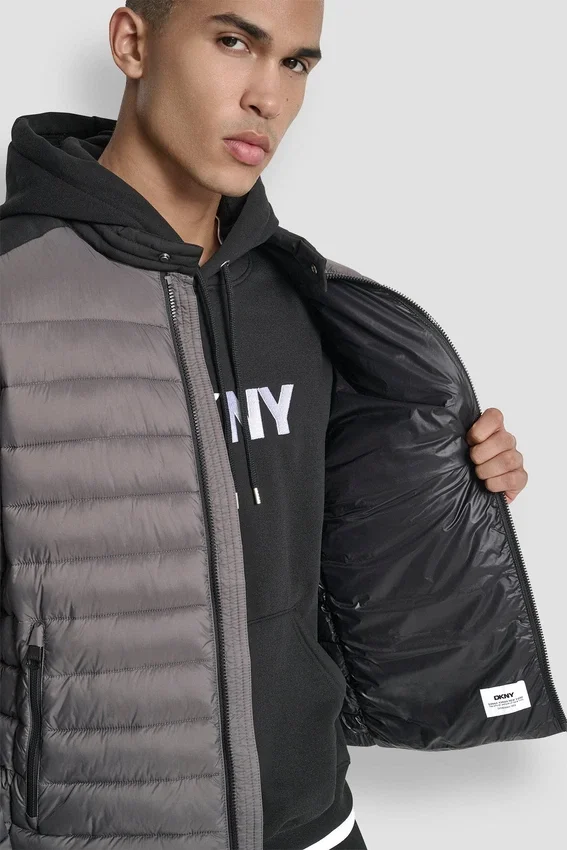 Chaqueta plumífero ligera estilo moto Cierre frontal con cremallera; Acolchado inspirado en el estilo moto Exterior: 100 % nailon con recubrimiento transparente Lavar a máquina en frío con colores similares; ciclo delicado; secar en secadora a baja temperatura; usar solo blanqueador sin cloro cuando sea necesario; no planchar Importada N.º de estilo: Dx551855
