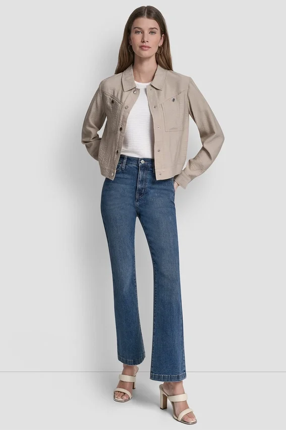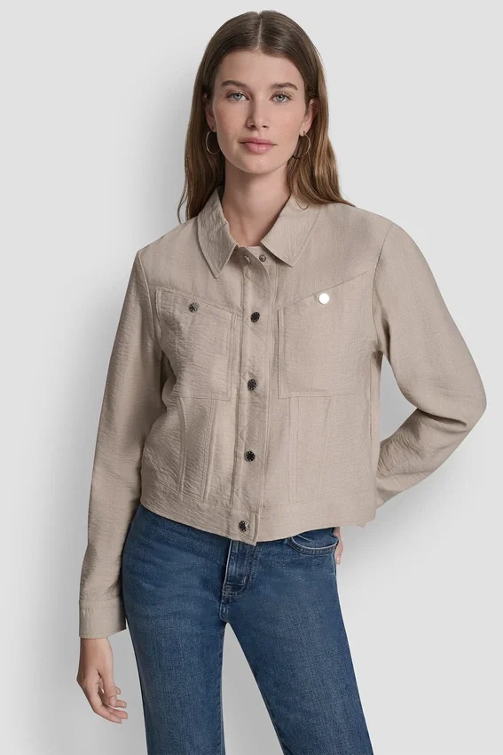- Chaqueta trucker corta en tejido arrugado con textura