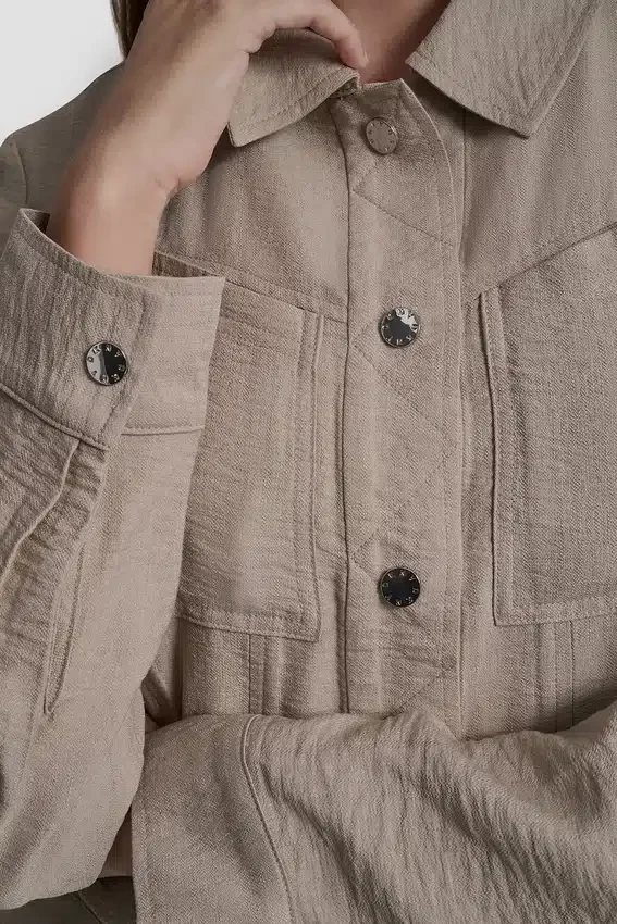 - Cierre frontal con botones a presión para un estilo limpio y minimalista