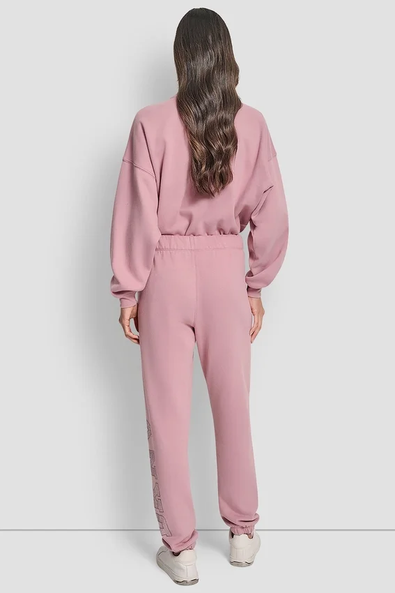 Pantalones Jogger de talle alto con logo Varsity de pedrería recta Talle alto con cierre de elástico Corte holgado y de pierna recta para la comodidad diaria Cintura elástica para mayor facilidad de uso Sin forro Características: Logo Varsity de DKNY con pedrería de gran tamaño en el costado Tejido suave de mezcla de 60 % algodón y 40 % poliéster Lavar a máquina en frío, ciclo delicado