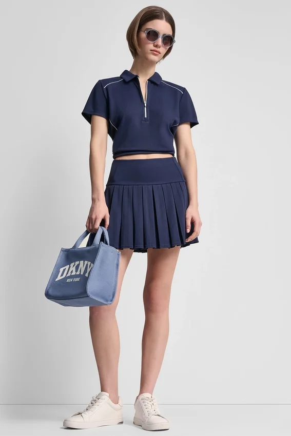 Luce un estilo deportivo y lleno de energía todo el día con esta falda-pantalón de tenis plisada: el tejido piqué que absorbe la humedad te mantiene fresca, mientras que las sudaderas polo holgadas y las zapatillas clásicas te dan el toque perfecto.