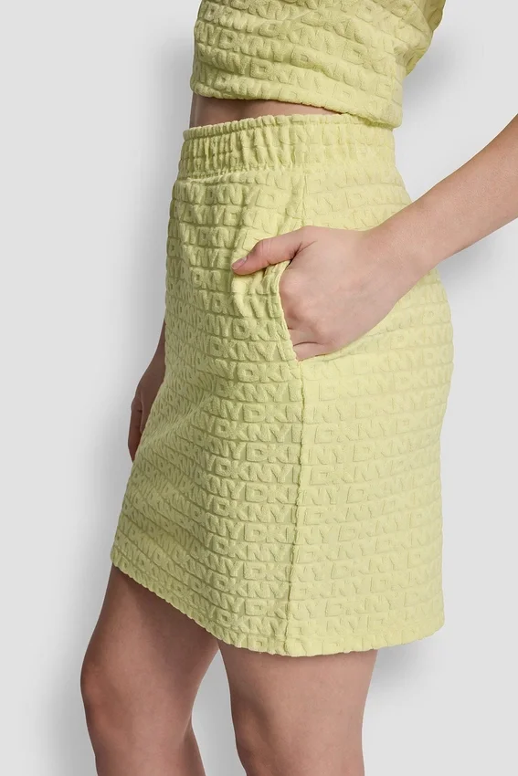 Una minifalda divertida con detalles de jacquard con logotipo, diseñada para un estilo desenfadado, desde tenis casuales hasta sandalias más elegantes. La cintura elástica sin broches garantiza la comodidad al tiempo que mantiene una silueta chic.