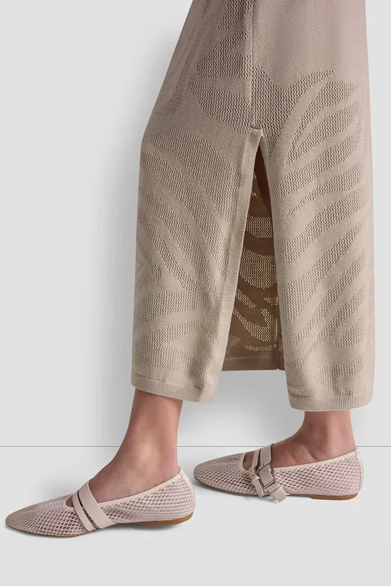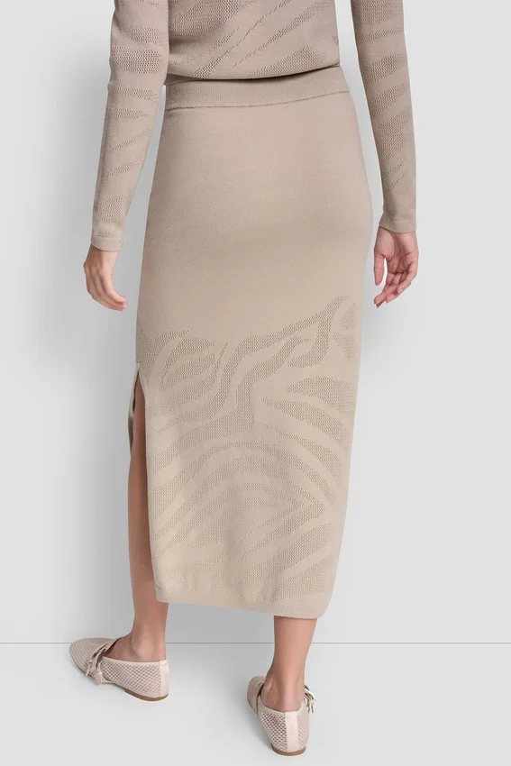 Una versión elegante y moderna de la clásica silueta midi, esta falda de punto zebra con diseño especial aporta una textura refinada y una sofisticación natural a cualquier look. Diseñada con un patrón de punto abierto y una sutil abertura frontal, ofrece una favorecedora forma de lápiz que se adapta a tus movimientos.