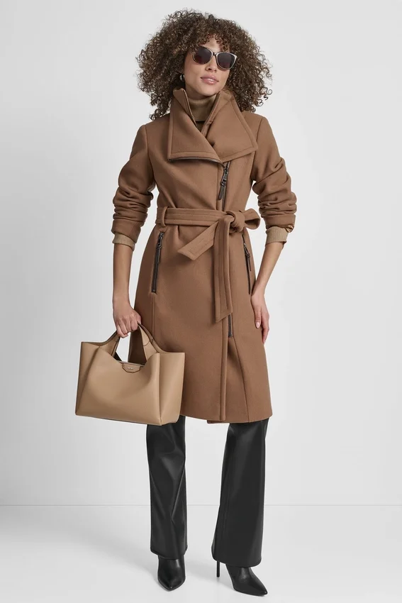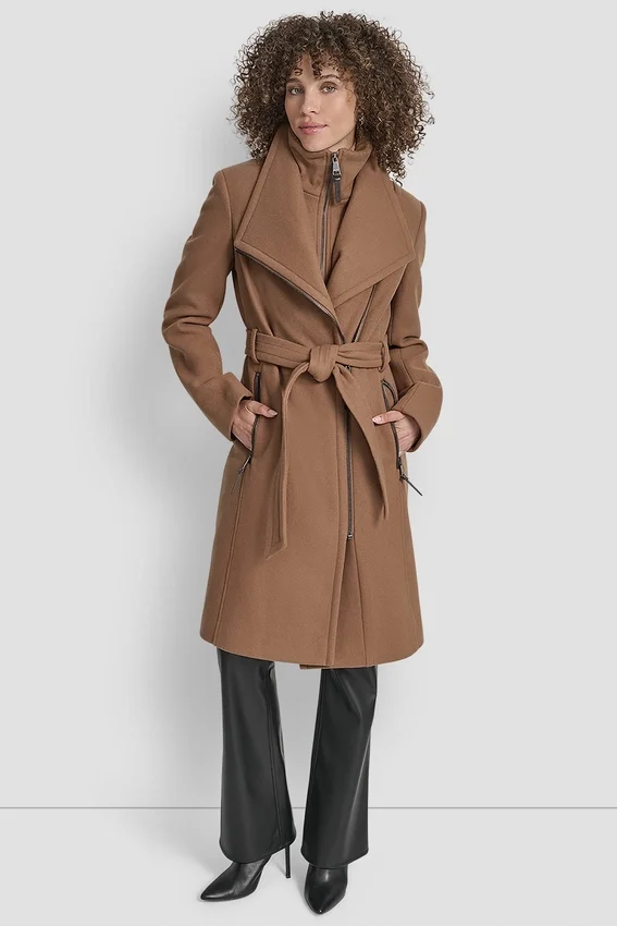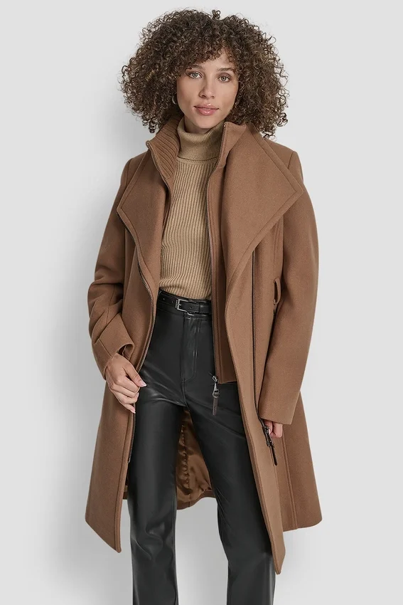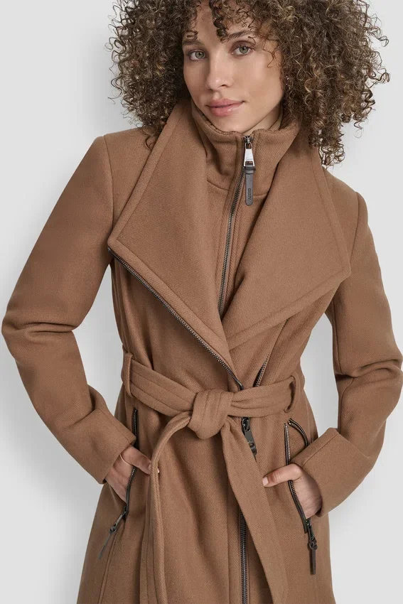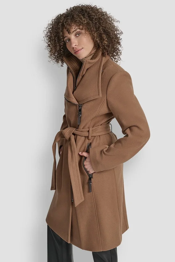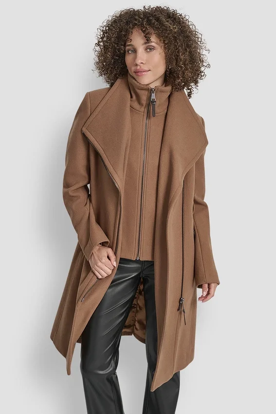 Chaqueta de mezcla de lana DKNY. Prenda de abrigo atemporal confeccionada con una suave mezcla de lana (52 % lana, 38 % poliéster, 4 % nailon, 4 % acrílico, 2 % viscosa rayón). Cierre frontal con cremallera, escotes con solapas y mangas largas para un estilo clásico. Diseñada para brindar calidez con un acabado elegante de DKNY. Importada. N.º de estilo: Dl5Mwy40