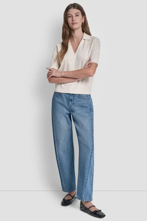 Con un toque de brillo, este jersé de manga hasta el codo cuenta con un logotipo de DKNY de pedrería que le da un brillo refinado. Confeccionado en un suave tejido de punto de mezcla de algodón, ofrece comodidad y transpirabilidad con un acabado sofisticado y moderno.